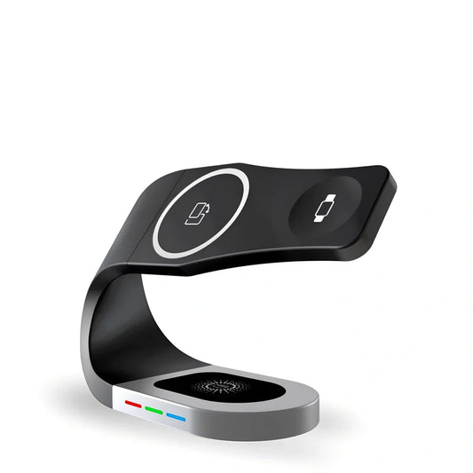 Three in one wireless magnetic suction bracket with 15A output current, measuring 184×113×65mm, featuring ABS and stainless steel construction for secure device mounting