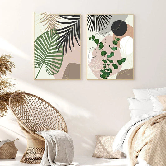 Tropical Plant Leaf Wall Art Canvas Painting: 9 Available Sizes from 10x15cm to 60x80cm for Customisable Home Décor with Fashion Casual Style