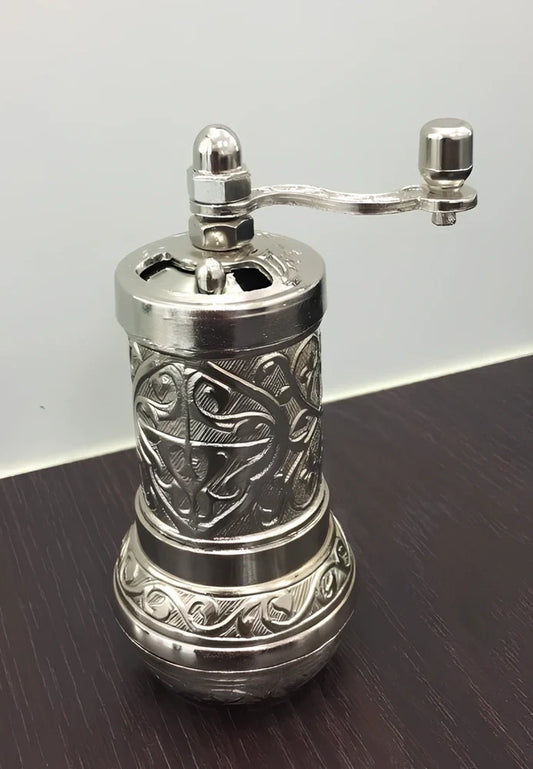 Turkish manual coffee grinder with removable grinding mechanism for easy cleaning, featuring ceramic burrs that maintain flavour integrity and compact 15cm height for kitchen storage efficiency