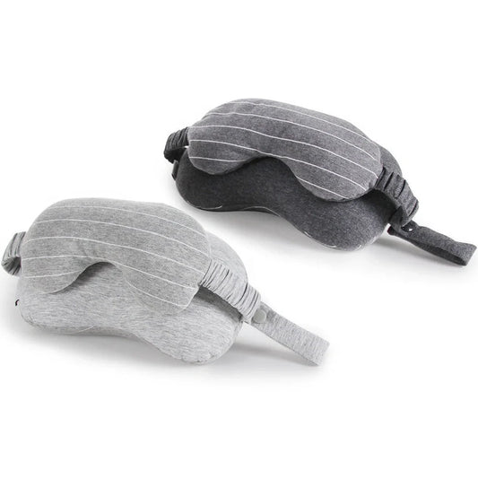 Two-in-one multi-function eye mask pillow with foam particle filling measuring 24 × 13 × 14cm that provides neck support during travel and converts to a sleep mask for eye rest