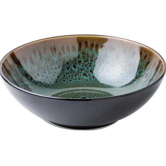 Vintage green ceramic 8-inch noodle bowl with 1-litre capacity for generous portions, featuring kiln-changing glaze porcelain construction and weighing approximately 650 grams for stable use