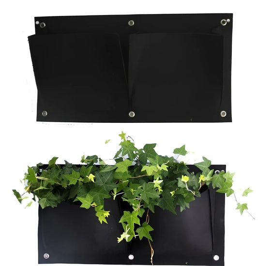 Wall garden hanging planting bag with 18 planting pockets doubles growing area on patios or balconies using recycled felt material for mess-free indoor and outdoor vertical gardening of herbs, flowers, and vegetables