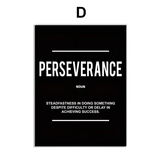 Wall art featuring inspirational quotes printed on canvas, available in nine sizes from 15x20cm to 60x90cm with six colour options for office and home decoration