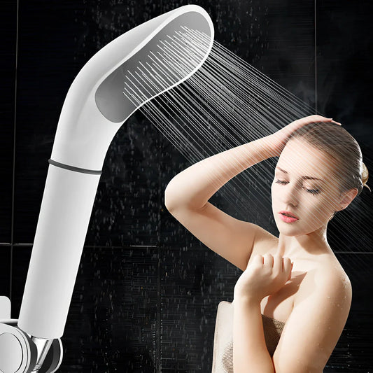 Water saving filter shower head with 1.5m stainless steel hose that reduces water consumption while providing rain-style shower function in black or white filter models