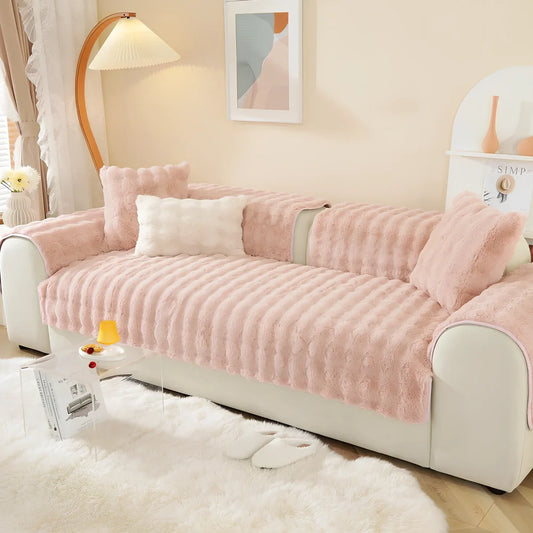 Warm sofa cushion with bubble plush flannelette covering measuring 110x110cm to 110x240cm, providing thermal insulation during cold weather while maintaining soft texture through repeated washing cycles