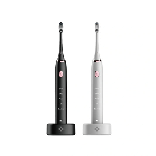 Waterproof electric toothbrush with inductive charging providing 4-minute cleaning cycles and 30-day battery life per charge for comprehensive dental care