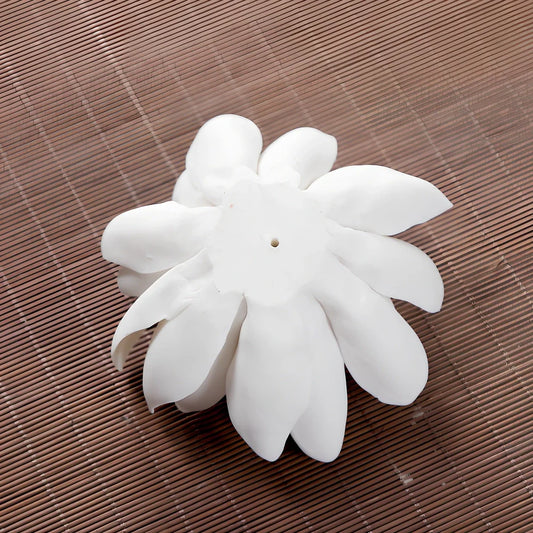 White porcelain lotus incense burner with two size options (S: 4cm diameter × 7.9cm height, L: 5cm diameter × 10cm height) for precise fragrance control and ceramic construction that withstands repeated use