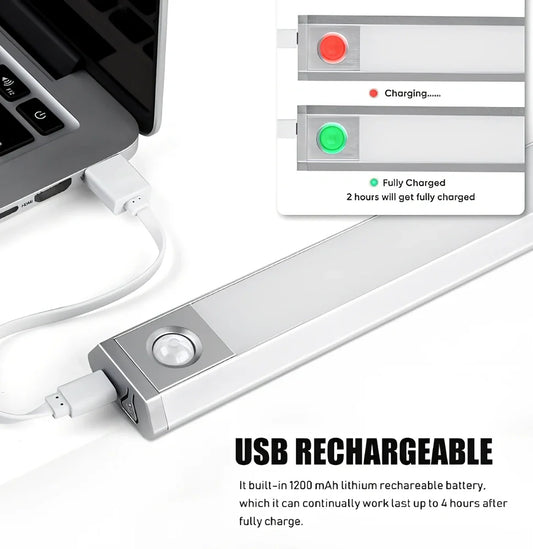 Wireless USB rechargeable motion sensor light with 1200mAh battery capacity, 3-5 metre detection range and 20-second auto-off delay for energy-efficient home lighting solutions