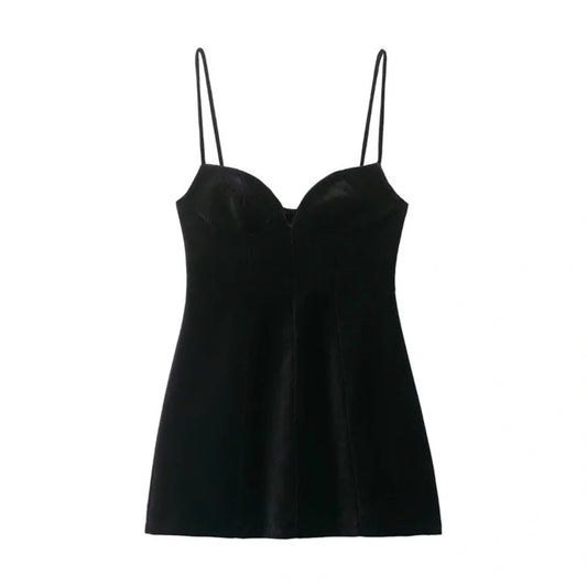 Women's flared hem thin strap short dress with hooded design and shirring technique, made from mercerised cotton knitted fabric in black stripe/grid pattern, available in sizes XS to L with irregular skirt styling for European and American style
