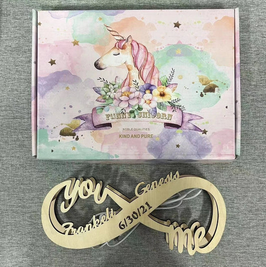 Wooden table lamp with customisable name engraving and adjustable 30-35cm height, offering personalised monochrome warm light or colourful remote-controlled illumination for home decor