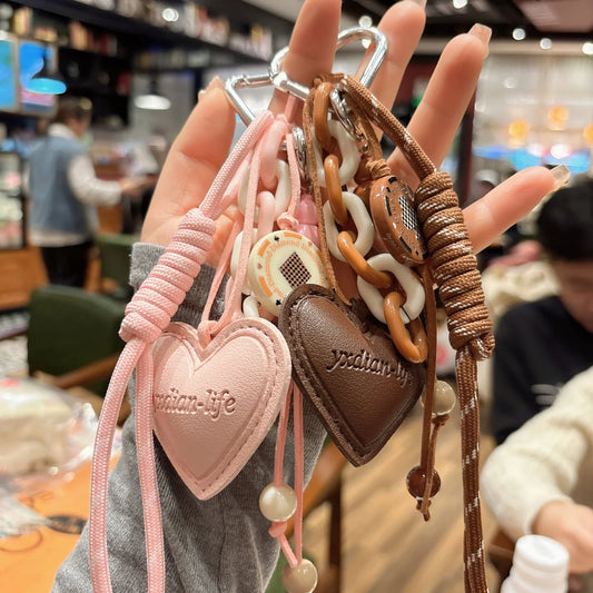 Woven rope leather heart-shaped small gourd pendant keychain with 4 colour options and durable leather construction for reliable key organisation