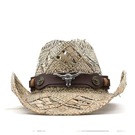 Hhomeenjoy Belt Decoration Natural Grass Hand-Knitted Western Cowboy Hat
