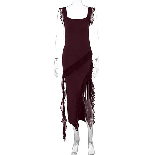 Chic Spaghetti Strap Maxi Dress with Thigh-High Slit
