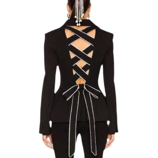 Hhomeenjoy Diamond Hollow Out Bow Tie Women's Blazer