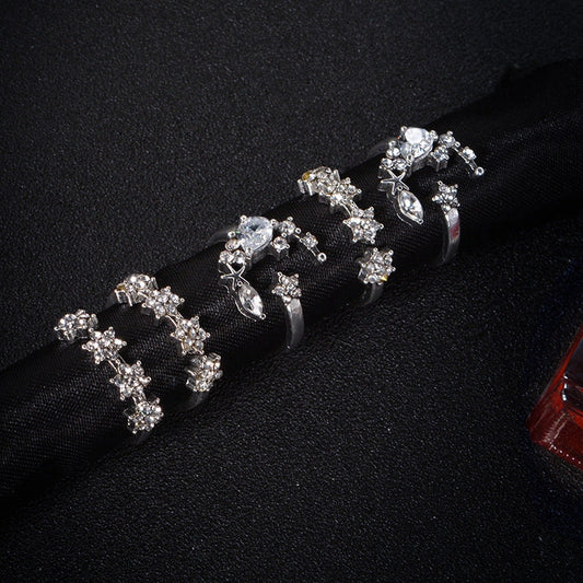 Hhomeenjoy Diamond Set Ring Star Moon Crystal Ring for Women