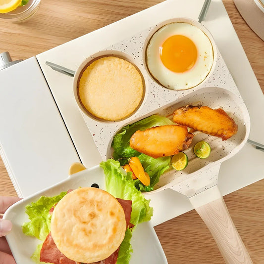 Aluminium alloy household frying pan with Japanese-style non-stick coating and composite multi-layer bottom for efficient heat distribution across gas and induction hobs