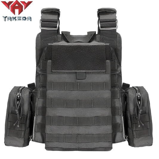 Combat camouflage tactical vest with adjustable waist extension from 75-125cm, featuring 600D polyester construction for quick-drying performance and multi-scene outdoor functionality