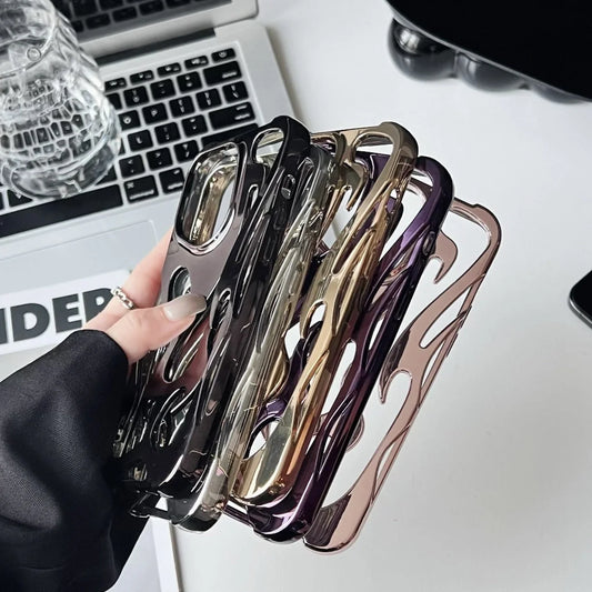 Hhomeenjoy Electroplating Hollow Heat Dissipation Phone Case with Flame Pattern for Apple Models