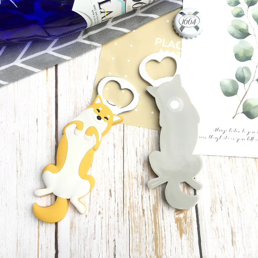 Animal-shaped bottle opener measuring 135mm by 50mm with alloy construction for reliable use and multiple colour options including Shaggy-Grey and Smiling Shiba Inu-Yellow