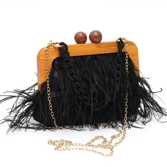 Hhomeenjoy Elegant Feather Evening Clutch with Chic Acrylic Chain