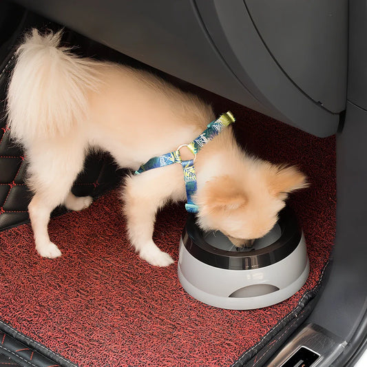 Anti-skid dog water bowl with splash-proof design measuring 15.3x18.9x8cm prevents spills during travel and keeps your pet's mouth dry while drinking