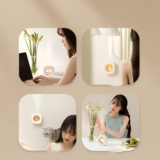 Aroma diffuser with automatic operation powered by dry batteries providing continuous aromatherapy in home or office spaces with 36dB quiet operation and 50ml capacity for extended use