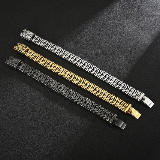 Hhomeenjoy European And American Popular Simplicity Domineering Personalized Hip Hop Flower Men's Titanium Steel Bracelet