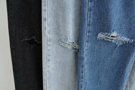 Hhomeenjoy European and American Double-Knee Holes Rolled Edge Mopping Jeans