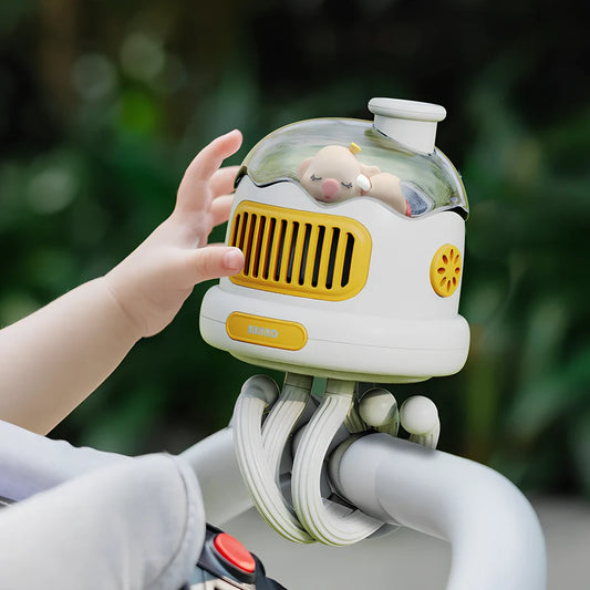 Baby carriage fan with 4000mAh battery capacity provides up to 8 hours continuous cooling using brushless motor technology for silent operation in nurseries and student accommodation
