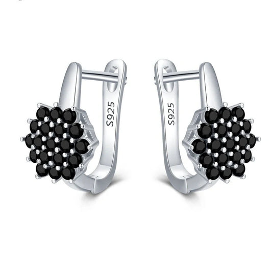 Hhomeenjoy Korean Style Copper Black Zircon Flower Stud Earrings for Women