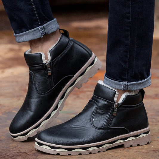 Hhomeenjoy Men's Casual Low-Top Leather Shoes in Black