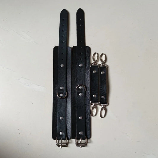 BDSM handcuffs crafted from PU leather with adjustable 5-8cm wrist openings and secure double-locking mechanism for controlled restraint during intimate activities