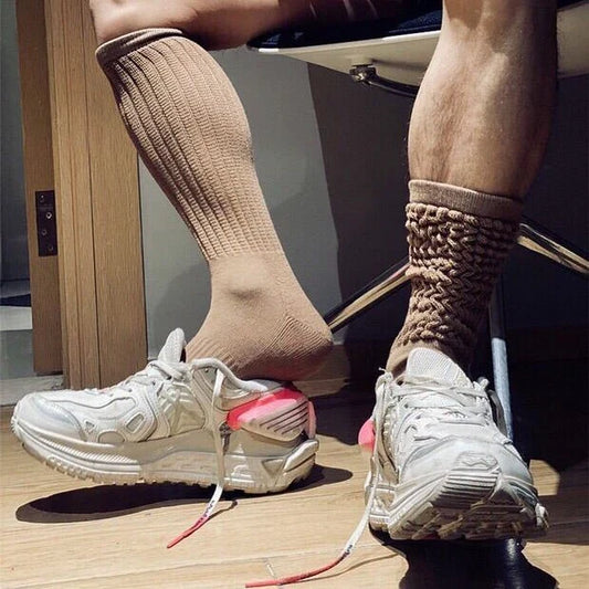 Hhomeenjoy Men's High Solid Color Breathable Sweat-Absorbing Terry Long Socks