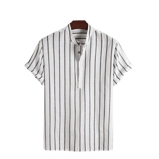 Hhomeenjoy Men's Striped Short Sleeve Cotton Shirt in Multiple Colors