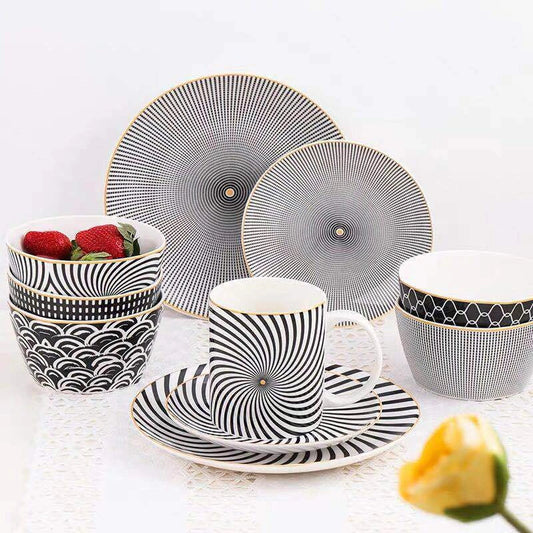 Hhomeenjoy Nordic Style Geometric Ceramic Plate Set for Breakfast and Tea