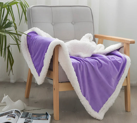Double-layer flannel blanket with upgraded lamb fleece backing provides thermal insulation and reinforced flanging that prevents shedding and edge separation