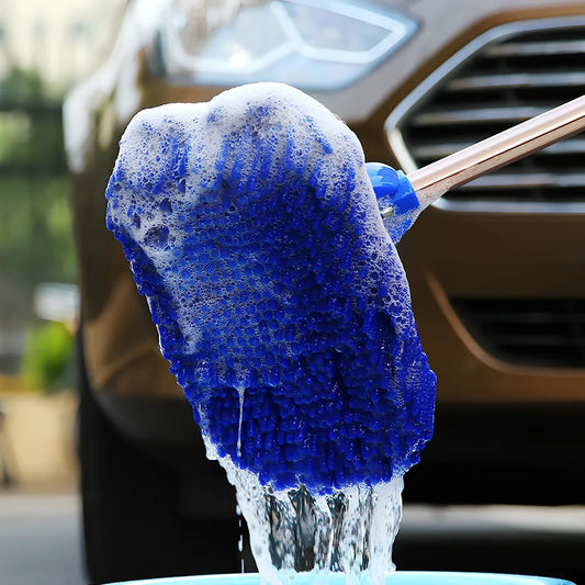 Blue big round head chenille mop with 4cm brush length and 0.4kg net weight for efficient floor cleaning with 300cm handle reach and replacement wool cover included