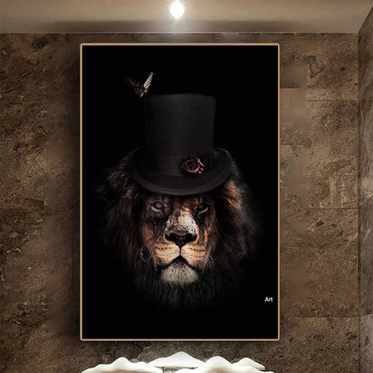 Black wildlife canvas poster print for living room decor with 9 colour options and 5 size variations from 20x30cm to 80x120cm, featuring machine-printed canvas with 2-5cm white border for framing