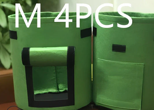 Breathable potato and vegetable plant growth bag with side harvesting window and double handles for balcony gardening, made from durable non-woven PE material in multiple size options