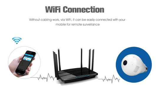 Bulb camera with 960P resolution and 10-metre lens focal length for clear security monitoring, featuring wireless connectivity and 360-degree coverage for comprehensive surveillance