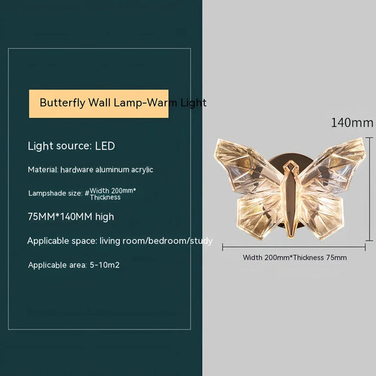 Butterfly crystal wall lamp with three colour lighting options and electrodeless dimming control for bedroom illumination across 5-10 square metre spaces