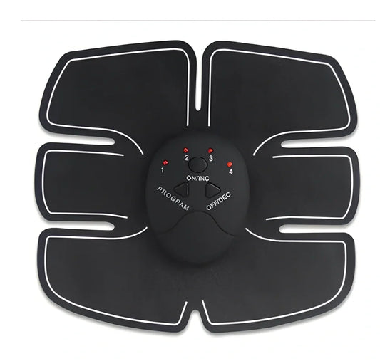 EMS muscle stimulator with abdominal targeting and six-pad configuration