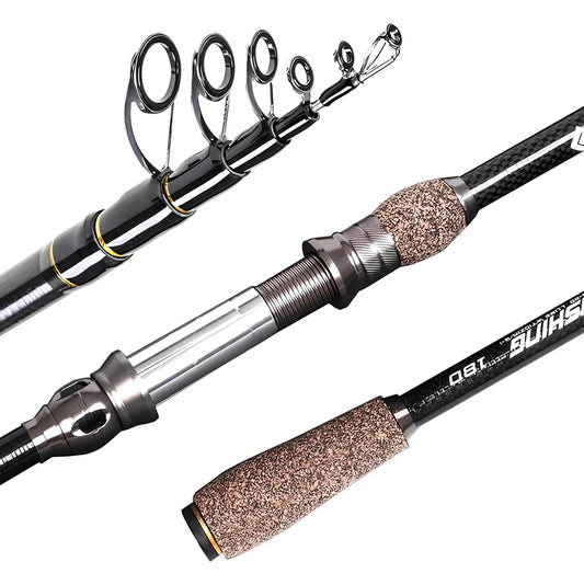 Carbon telescopic sea fishing rod available in four lengths from 1.8m to 2.7m, constructed with carbon and aluminium alloy materials for reliable saltwater angling performance