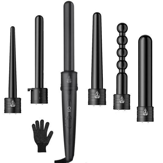 6-in-1 Multifunctional Hair Curling Iron Set with Interchangeable Ceramic Barrels