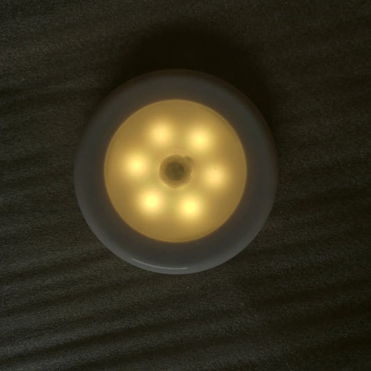 6LED human body induction cabinet lamp with 7-10ft motion detection range automatically illuminates for 15-30 seconds using 3 AAA batteries for hands-free lighting in dark spaces