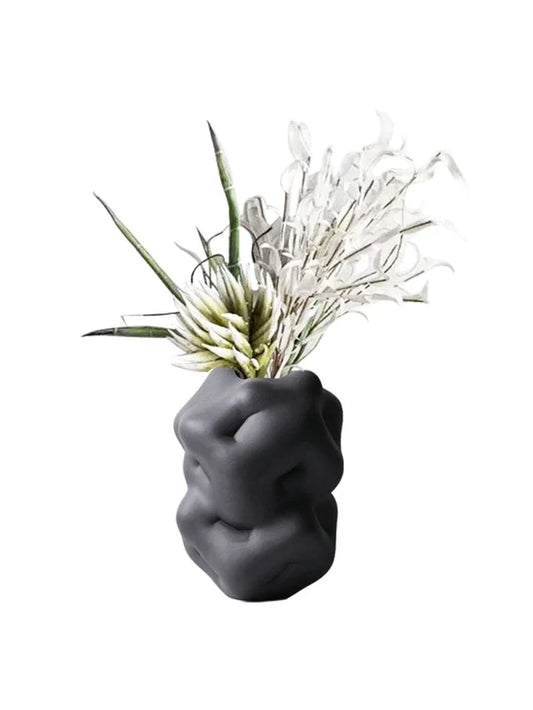 Ceramic flower vase with irregular concave-convex surface measuring 26x25x34cm, designed for modern home decor with textured finish that catches light beautifully