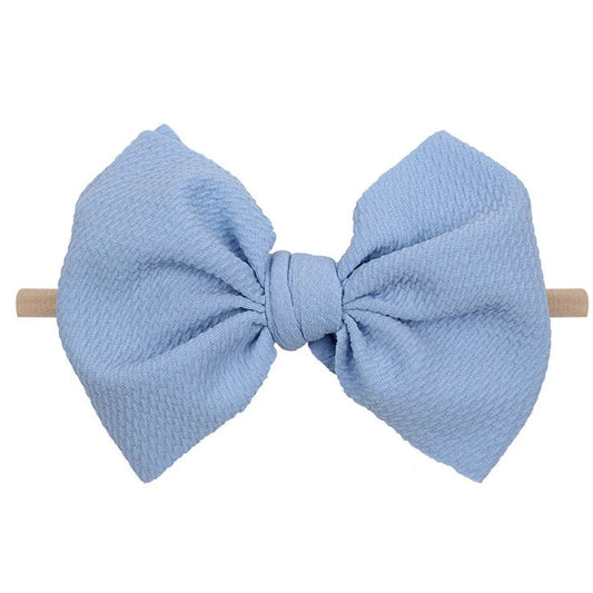 Children's bow hair accessories made from waffle fabric with manual processing, offering durable and washable designs in eight colour options for everyday wear
