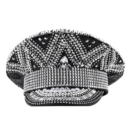 Hhomeenjoy All-Match Party Carnival Flat Top Punk Black Paillette Diamond Photography Hat