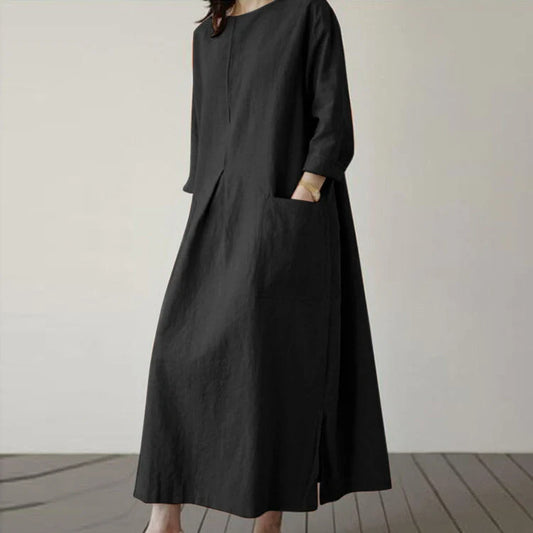 Hhomeenjoy Women's Autumn Cotton Dress in Orange Red, Black, Army Green