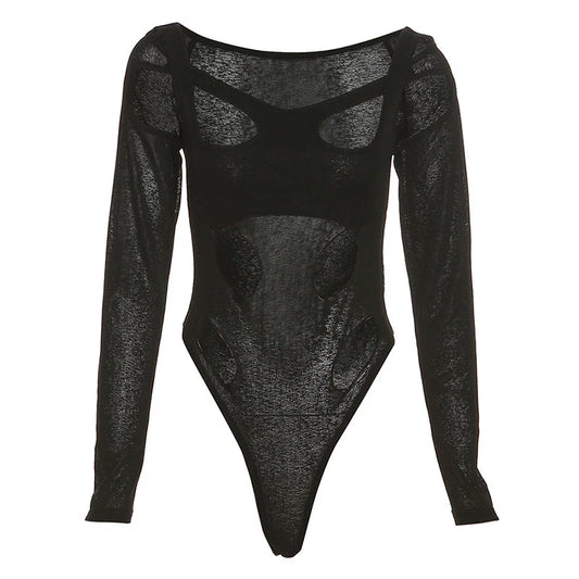 Hhomeenjoy Irregular Square Collar Long-Sleeved High-Waist Jumpsuit with Hollow Holes